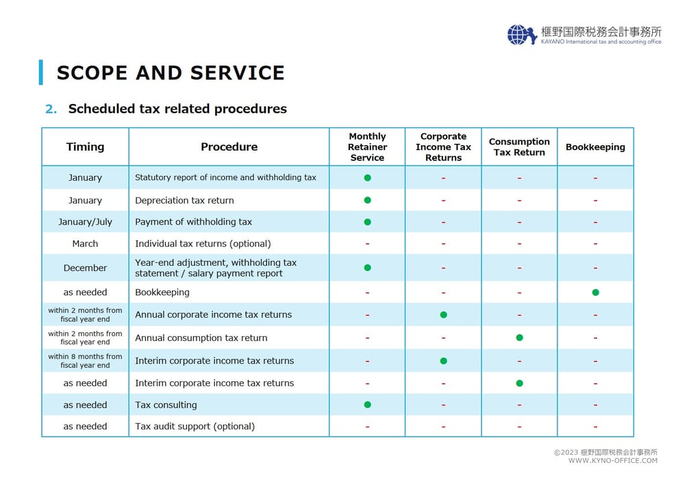 We have clarified and disclosed our fee table, so that you can imagin the cost for your business in Japan.