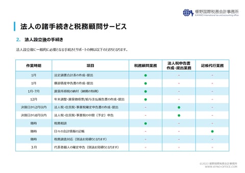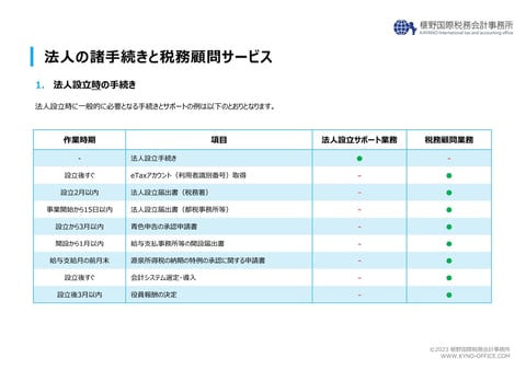 また、事業運営で必要な各種税務関連手続きをワンパッケージとすることで、余分な追加必要を掛けずに安心の相談体制をご提供いたします。